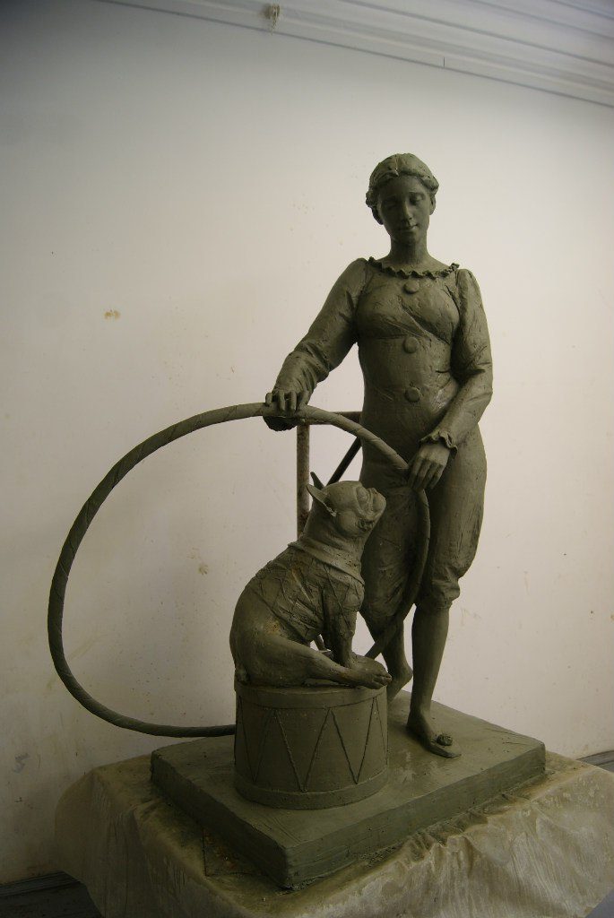 Теперь подробнее о скульпторах. Начнем с Ольги Окатовой. Она родилась в Мурманске, закончила Мурманскую художественную школу (преп. В.В. Скокленев), а затем поступила в Академию художеств им. Репина, отделение скульптуры (преп. В.Д. Свешников)! Диплом «Коммедианты» хотели установить возле Цирка на Фонтанке. На сегодняшний день Ольга — член союза художников Санкт-Петербурга и член союза художников Ленинградской области, а также Художник-скульптор Международного центра реставрации.